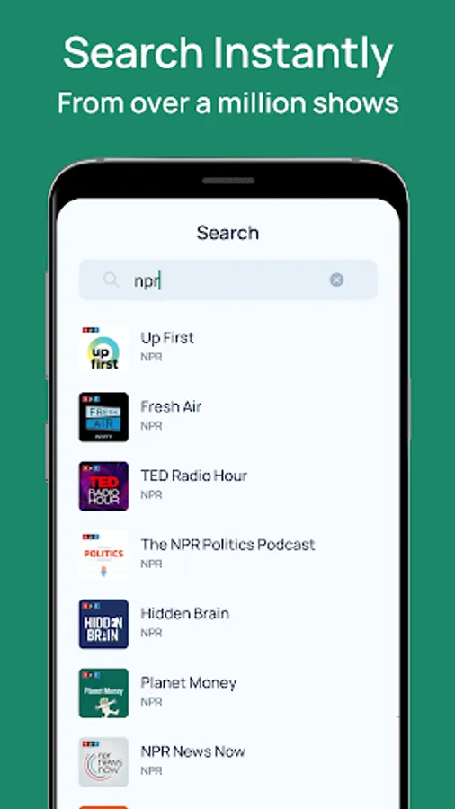 ✓ search from over 1,000,000 podcasts,