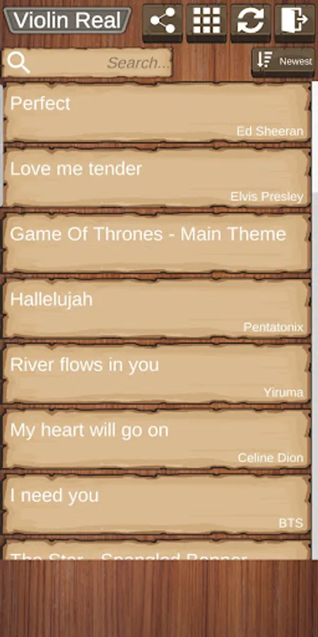 The Violin Real is 2 Violin type simulation app with Arco (using hand drag Violin bow) and Pizzicato (using hand touch) feature. Frequency range: G3 -> A5#.
