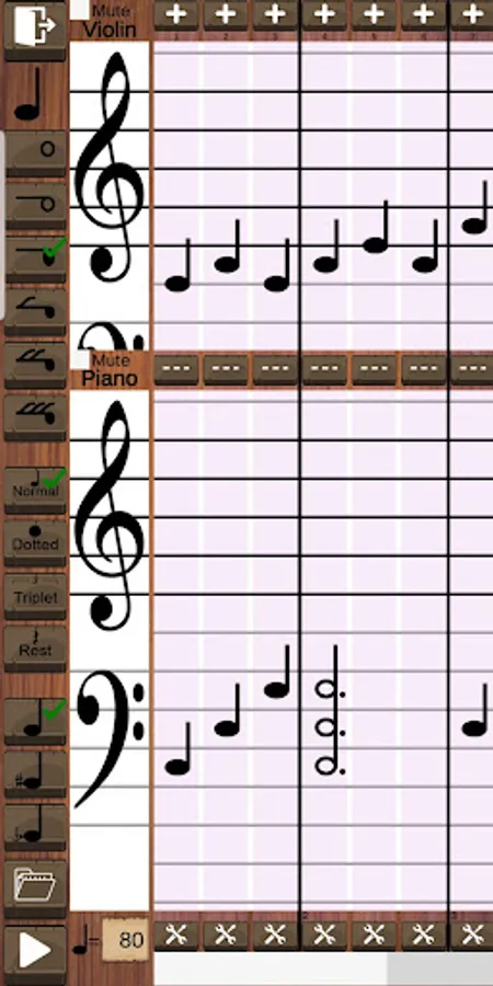 Create Music Sheet feature: You can create, save, open your music sheet with 2 instruments: Violin and Piano. Export it for playing or sharing to everyone.