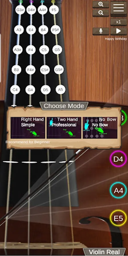 - No Bow: Use 1 or 2 hands press note for playing Violin sound