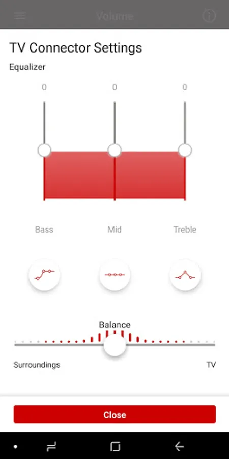 - Adjust the balance between background noise and the streamed signal when listening to streamed Bluetooth® audio* or watching television in the TV Connector program (requires optional TV Connector accessory)