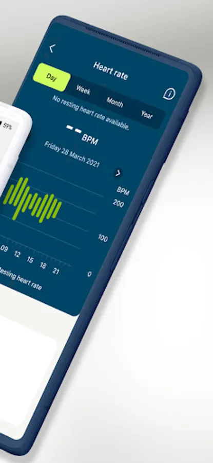 Numerous functions are available within the Health section such as Steps* and Wearing time*, including Optional goal setting*, Activity levels*, Heart rate tracking**, Distance walked and ran***.