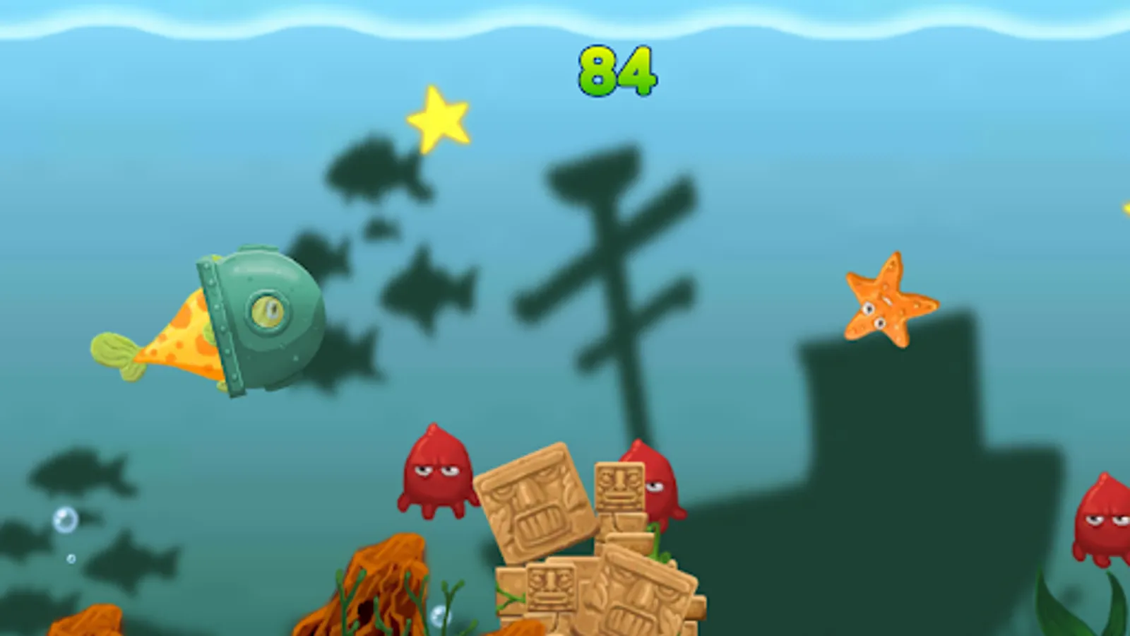 "Fish - Tap Tap" This is a kid-friendly arcade game. The goal is to swim the fish as far as possible, collecting stars (extra points). Avoid collisions with fish, seals and starfish swimming in the opposite direction.