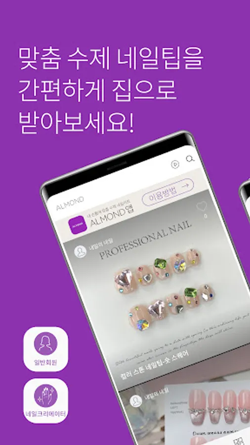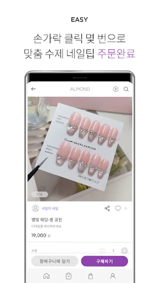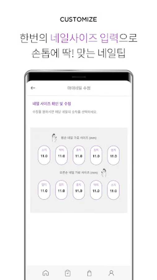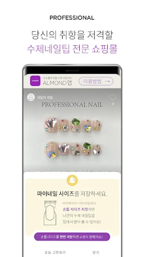 In the Almond app, if you enter your nail size once, nail art is conveniently delivered to your home with just a few clicks.