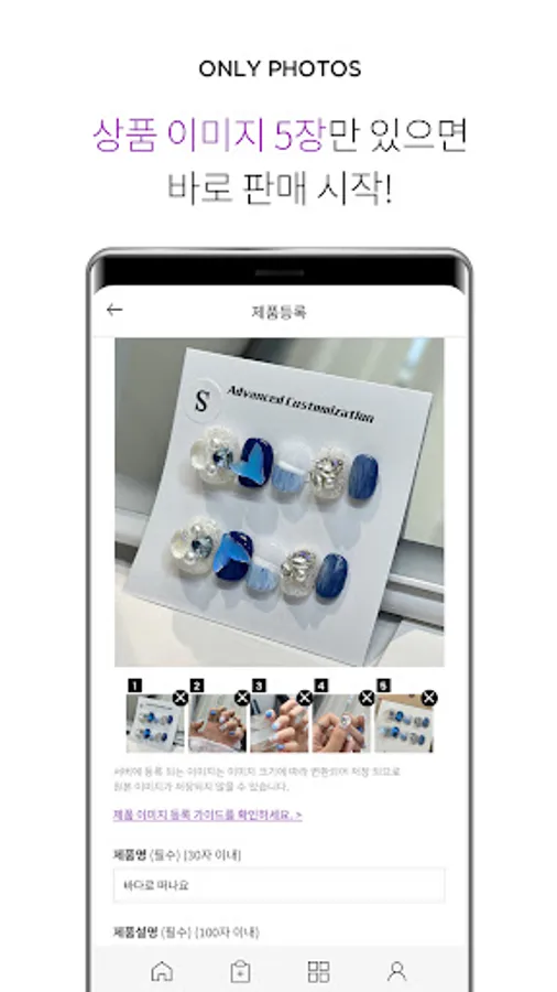 With just 5 photos, you can start selling products as a nail creator.