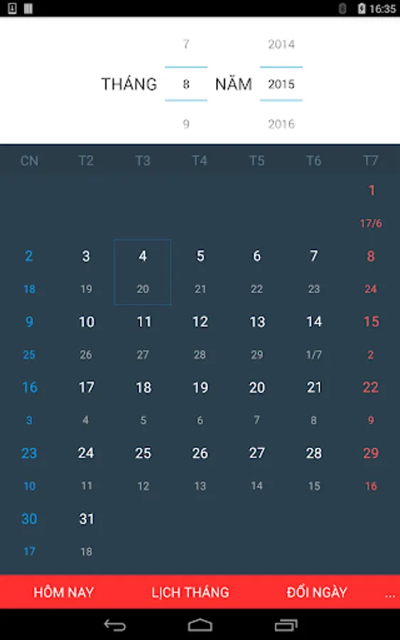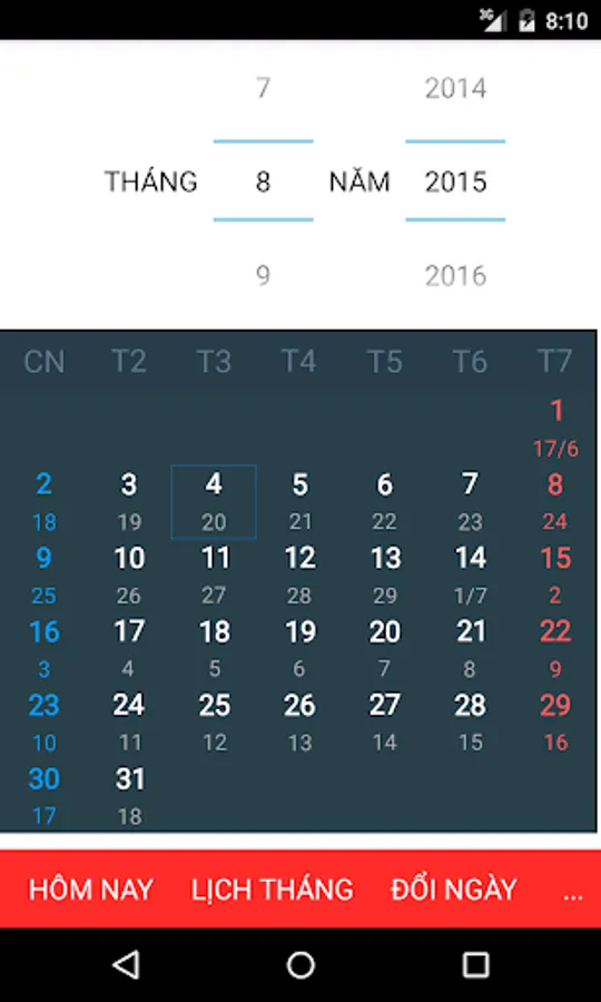 Lich Van Nien supports both Solar and Lunar Day with simple design,easy to use.