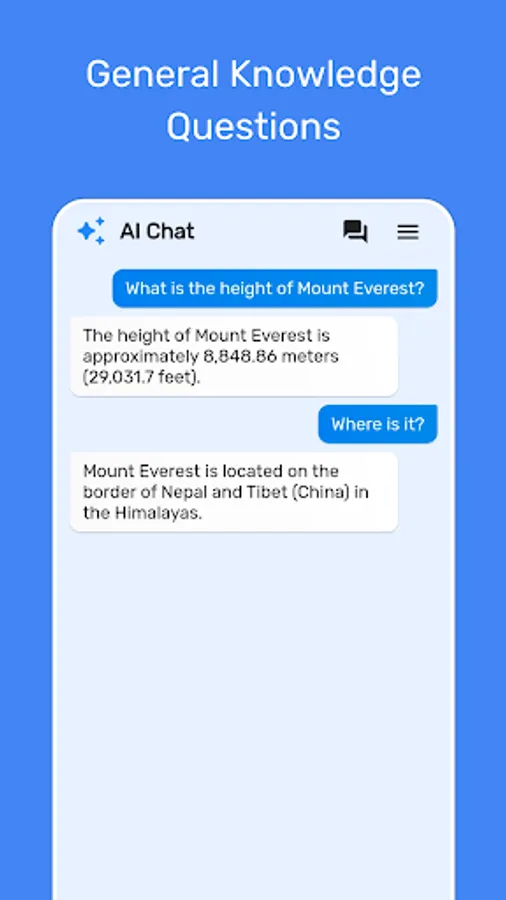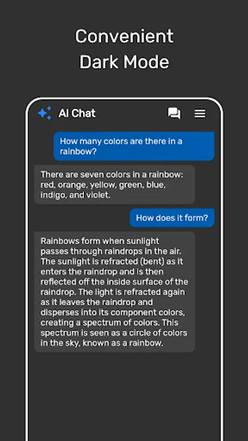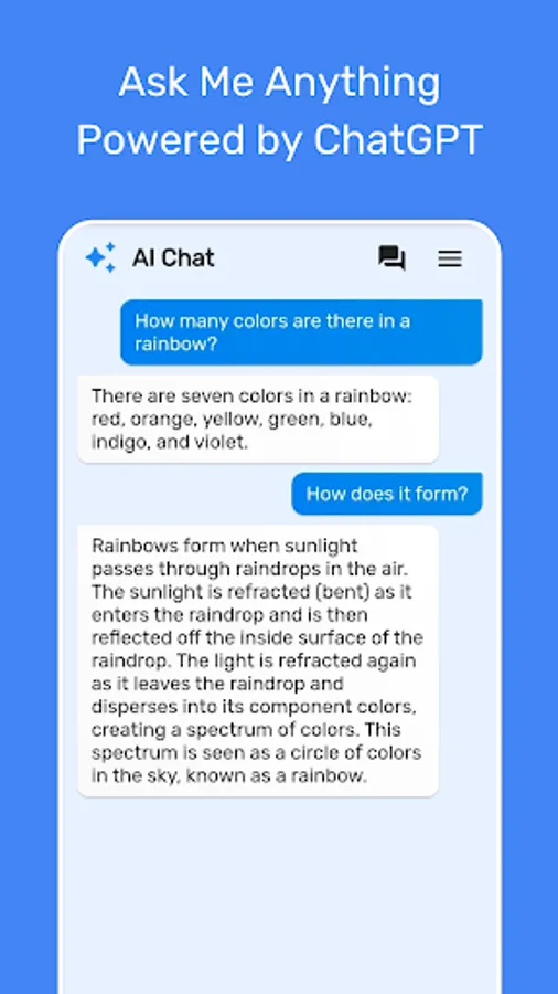 Ask AI Chatbot anything and get instant answers on any topic, powered by ChatGPT. The app is user-friendly and easy to use. Just open the app and start typing your message.