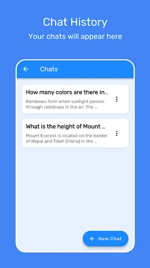 • Chat history: All your chats in history.