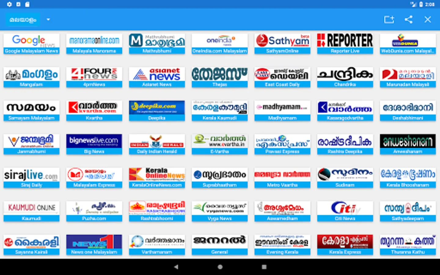 This Android app helps to browse and read all Malayalam Newspapers. All Local and National News. Fast, clean and less Ads.