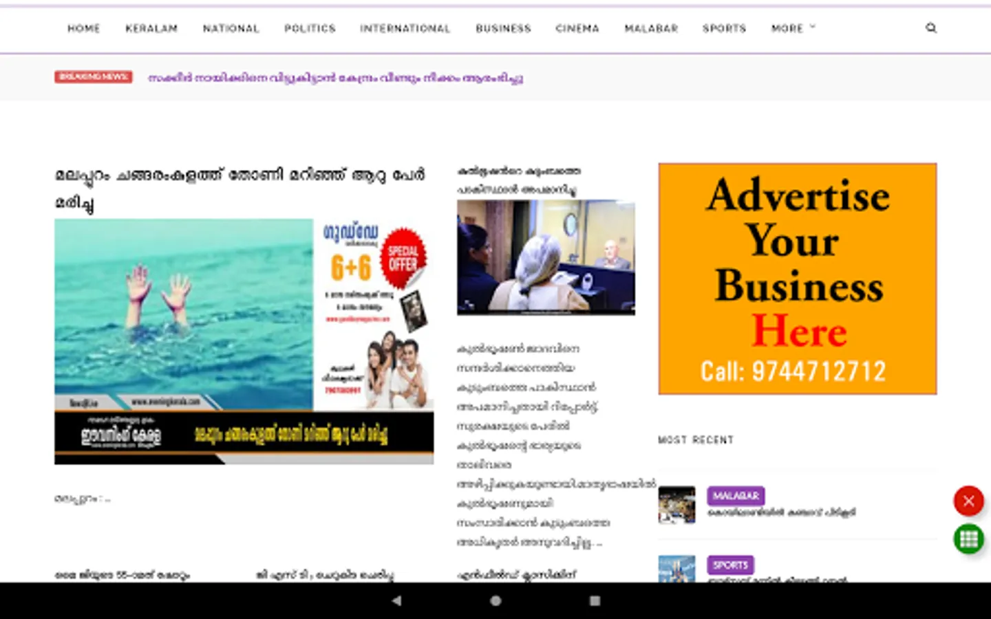 Clean, Fast and less Ads. Best App for Malayalam News in India.