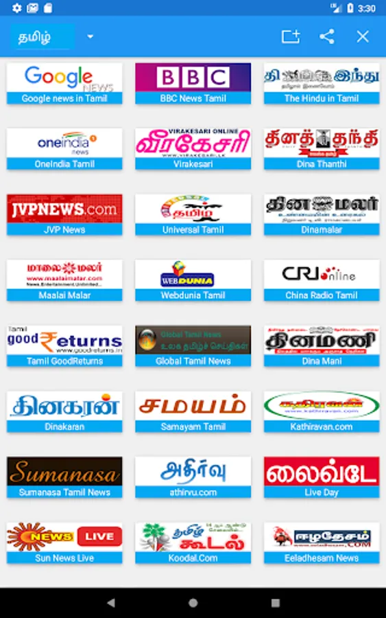 This Android app helps to browse and read all Tamil Newspapers Local and National. Fast and clean.