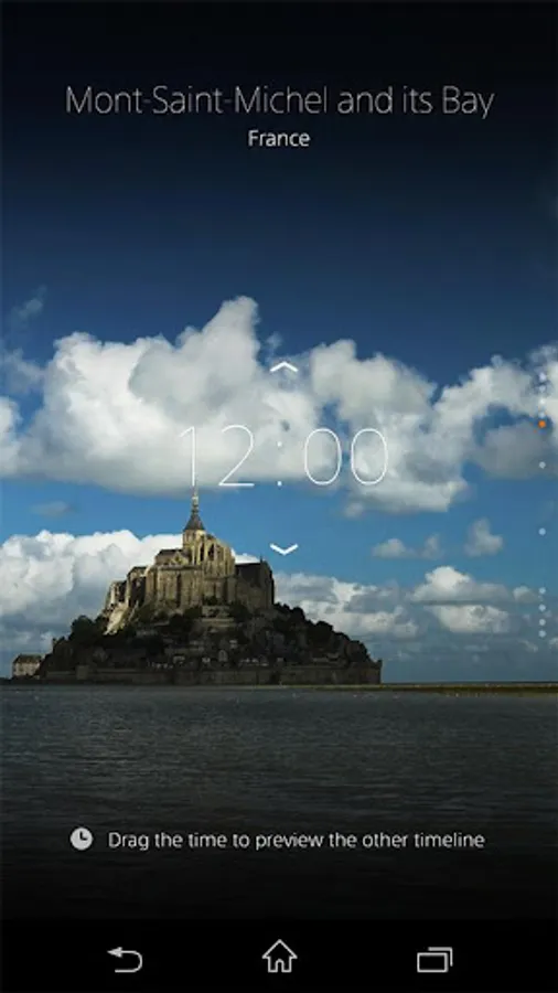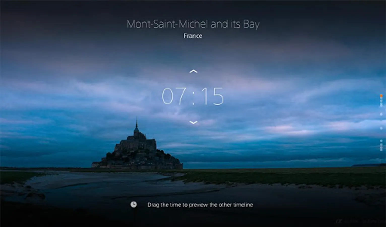 Users can activate Time-shift mode by vertically sliding the time display to marvel at "World Heritage" photos captured with Sony "α(Alpha) Interchangeable Lens Cameras" at different time of the day.