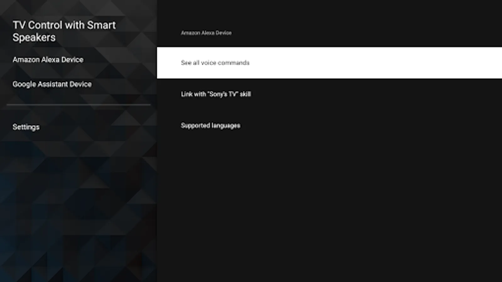 This app provides a function to link your BRAVIA TV from Sony with a smart speaker or other external devices and services.