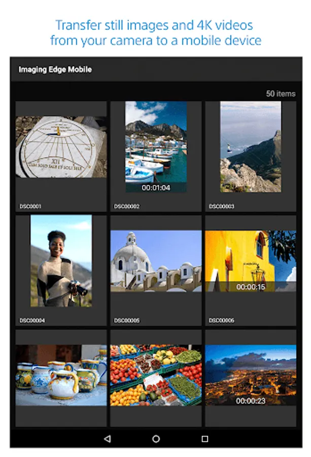 Imaging Edge Mobile allows images/videos to be transferred to a smartphone/tablet, enables remote shooting, and provides location information to images captured by a camera.