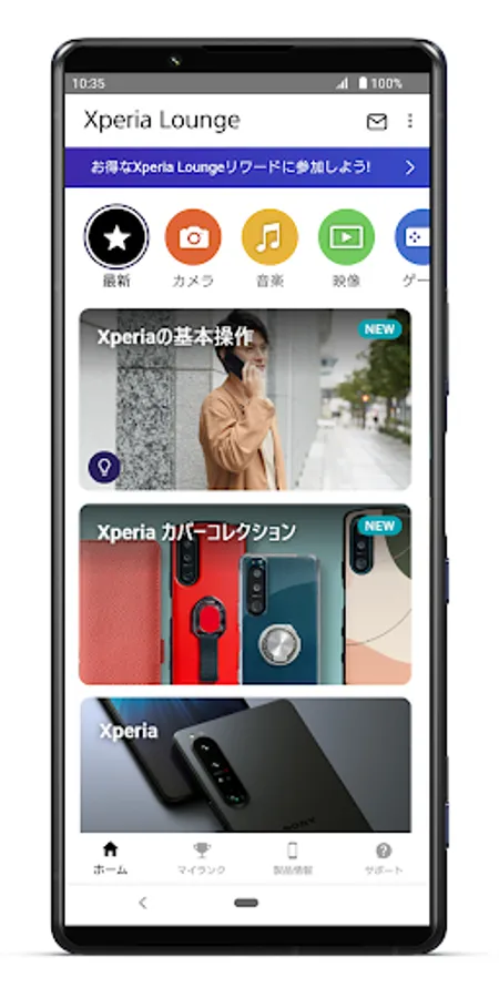 Not only can you quickly check the latest information such as new product information, recommended accessories, and campaigns, but you can also win luxurious prizes by collecting miles with "Xperia Lounge Rewards"!