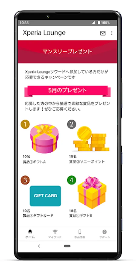 "Xperia Lounge Rewards" that only Xperia Lounge users can participate in.