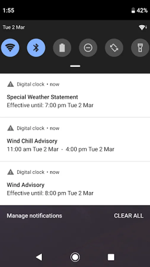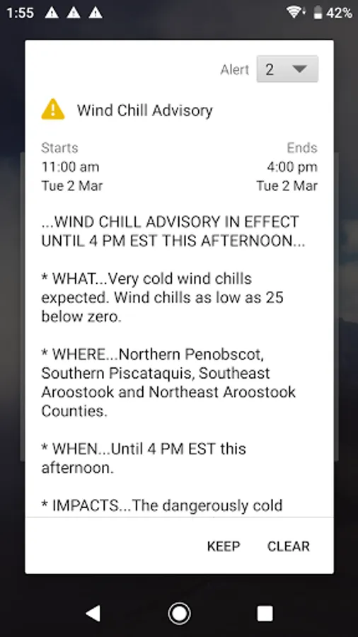 - Options to show location-based current weather, weather forecast, severe weather alerts and air quality information