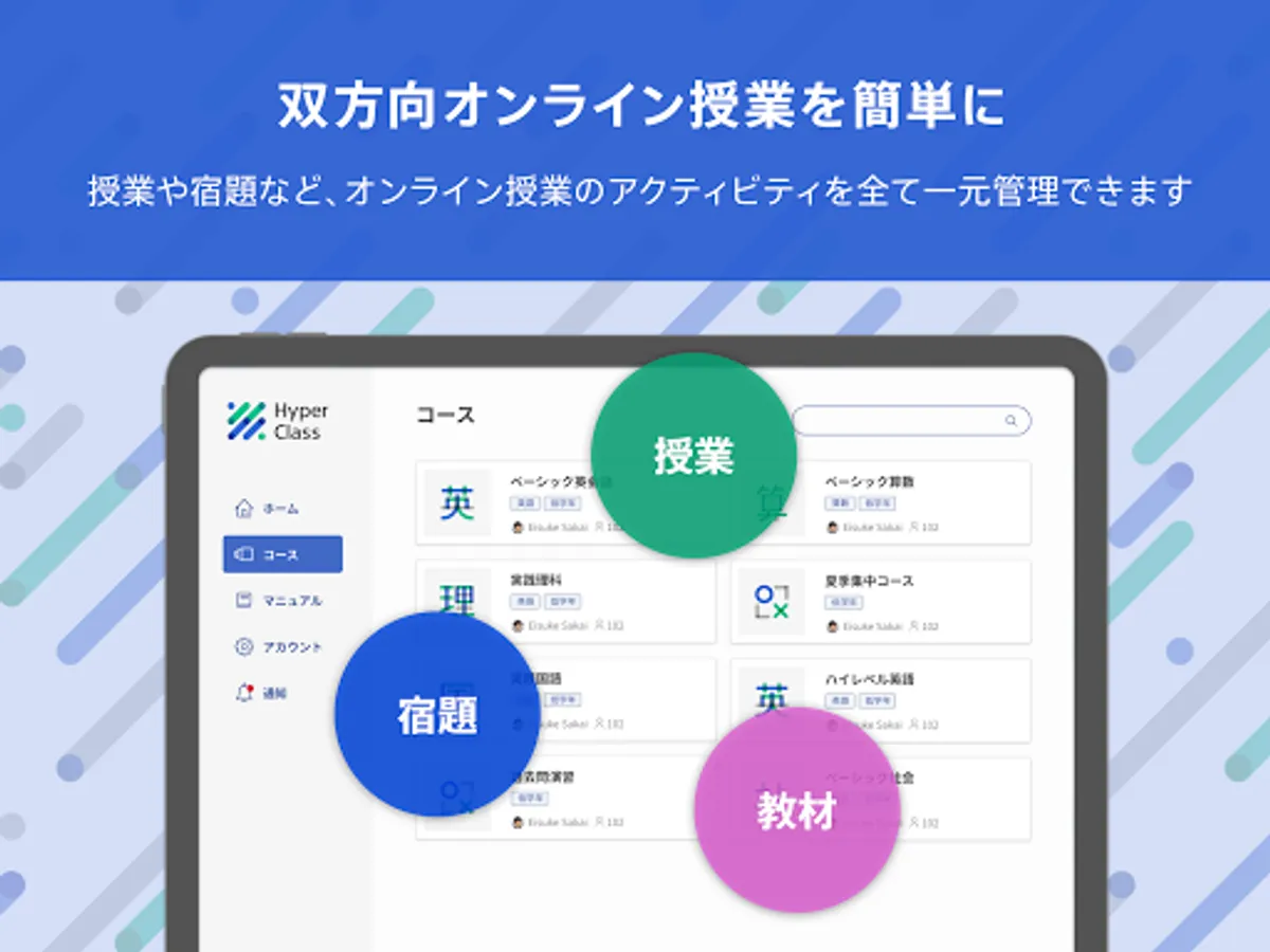HyperClass is an online education tool for teachers and students. Teachers can easily create classes and Students can also easily take their classes. A lot of activities in the classes will be stocked to the App so teachers can view in-class attitude and homework of each student.