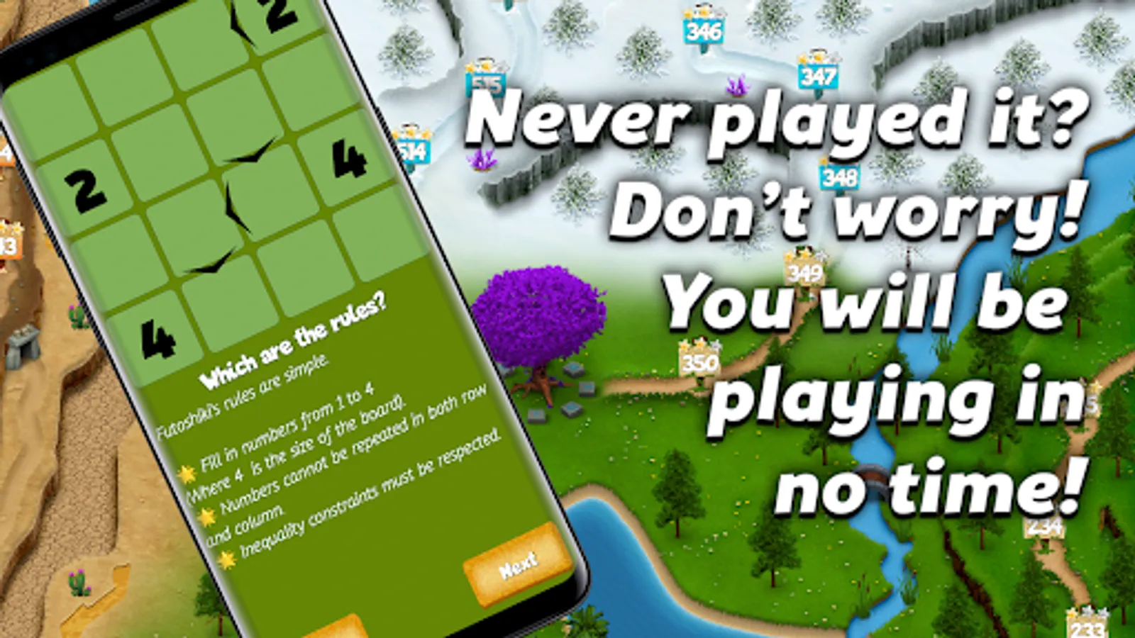 🌟 Suitable for all kind of players! 4 difficulty levels so everybody can play. The difficulty will increase as you progress the map until you become a Futoshiki master!