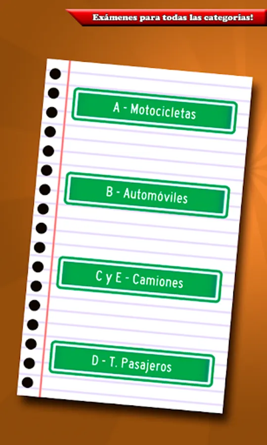 You can choose the category of examination from motorcycles, cars, trucks. All!! (A, B, C, D and E)