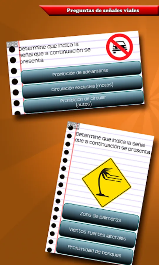 You'll find all traffic signals divided by category. Each signal has its description so you can study them.