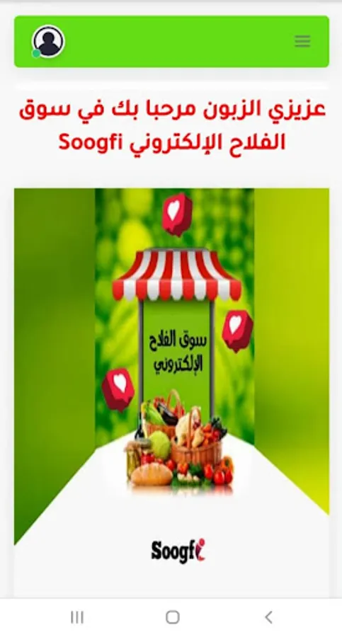 The Soogfi application is: a digital space and an electronic database that allows the participation of farmers, owners of institutions, investors and wholesalers in order to present their products to browsers from retailers in all fields of agricultural and animal agriculture and their derivatives, natural materials and raw materials, as well as linking them with exporters and Suppliers in this sector, in addition to truck drivers for transporting and delivering goods inside the country and shipping companies abroad, in order to contribute to the definition of all these actors with each other and link them in a unified digital market for the purpose of displaying data and information about their products and institutions, and this This will help them in facilitating the trade exchange between them inside the country and in facilitating the export of their products abroad.