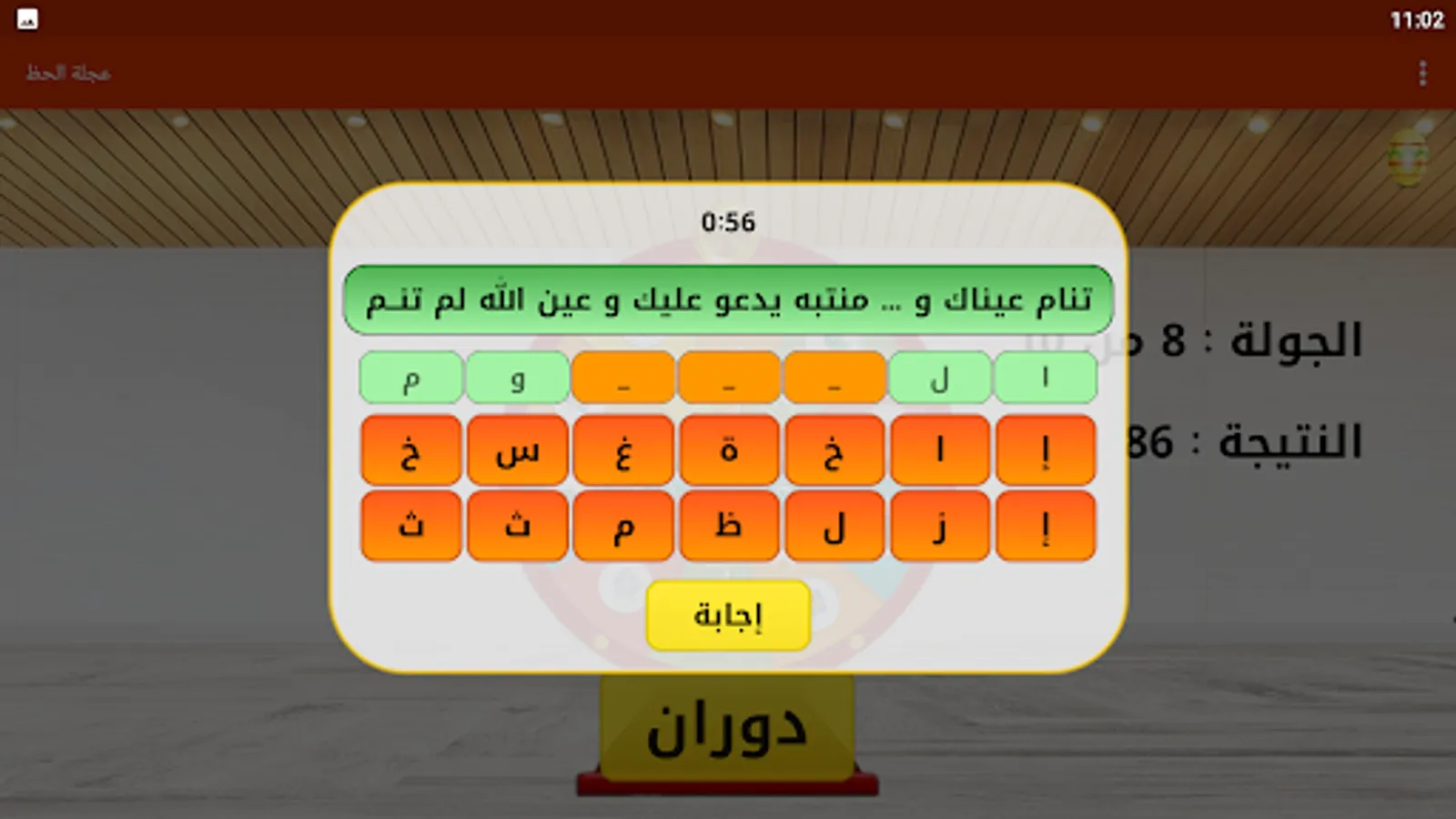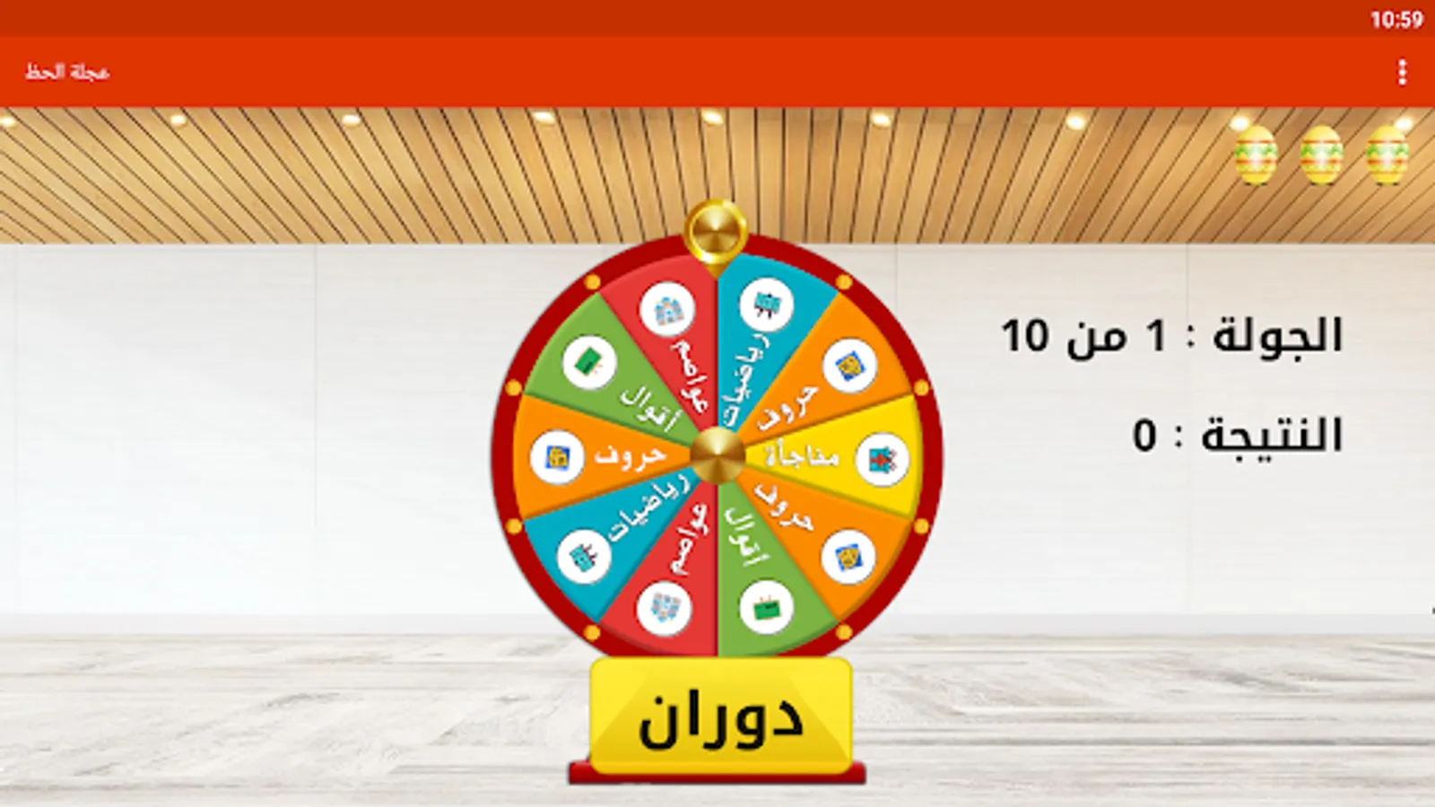 The wheel of fortune in Arabic has challenges in various cultural and sports fields, puzzles and many surprises. It is a game that simulates reality programs and competitions. You can use all your skills to go to the top, discover the answer and flex your mind daily to develop the speed of your thinking and reaction.