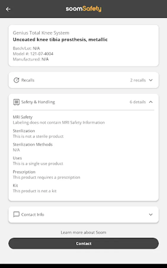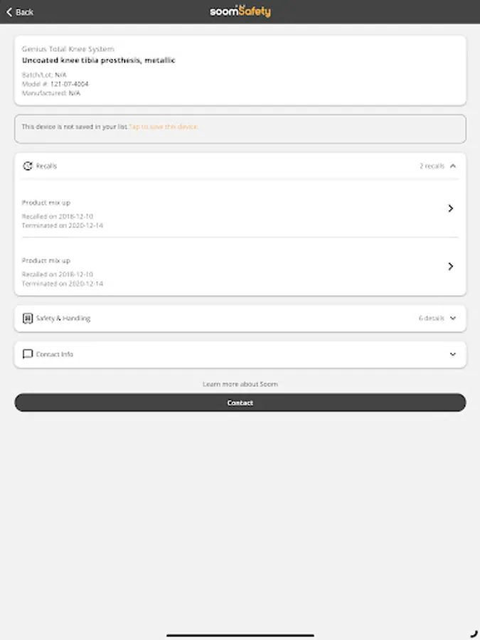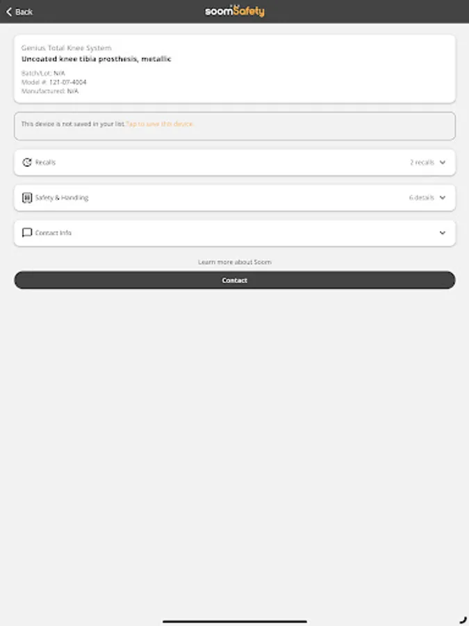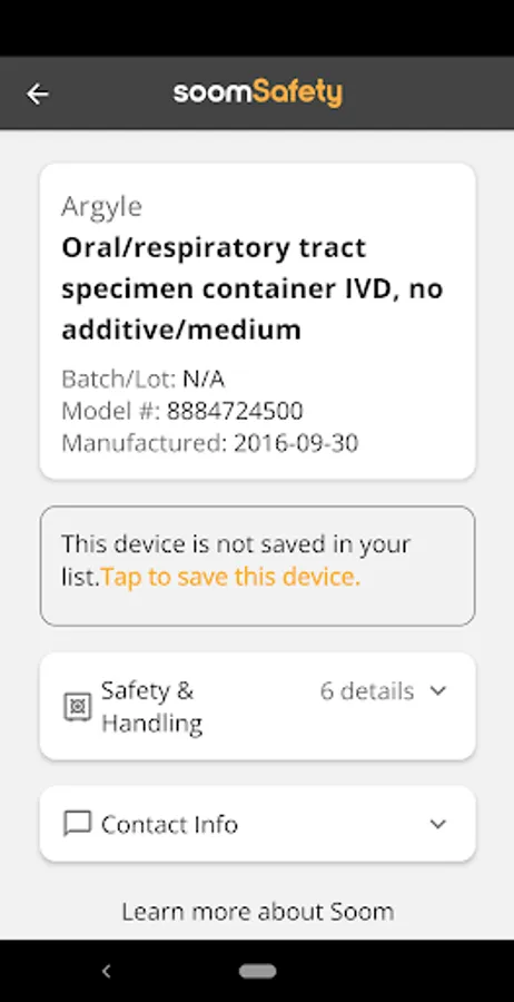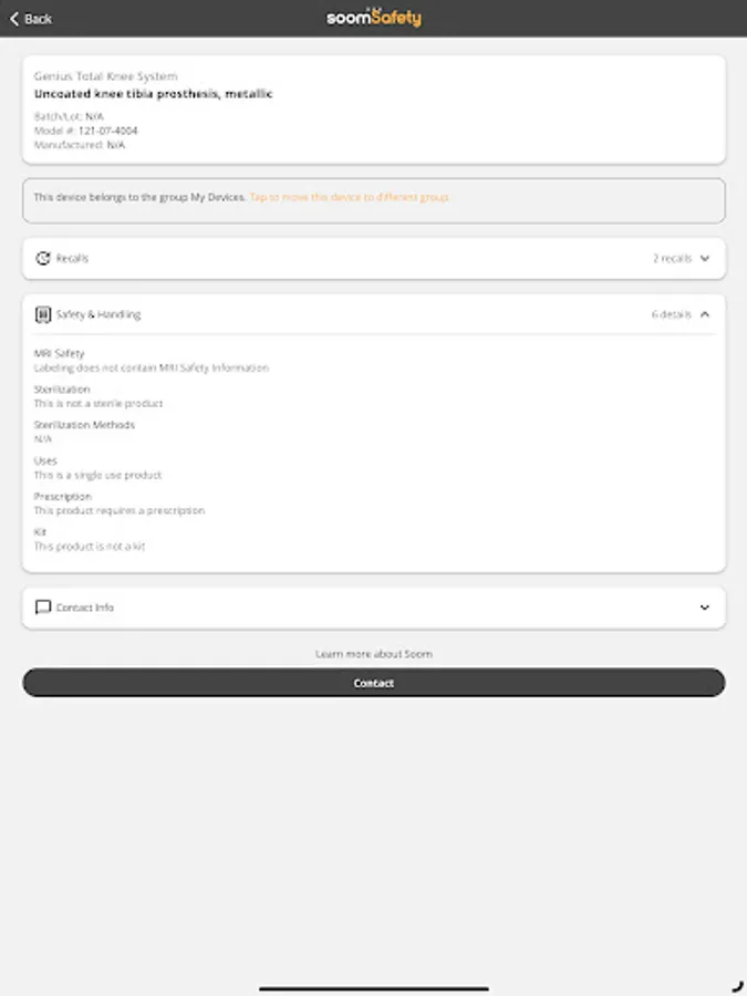 SoomSafety simplifies the process of managing medical devices, providing quick access to critical information that can help ensure patient safety. The app also lets you group medical devices for easy organization and access and sends notifications if any stored medical device is ever recalled.