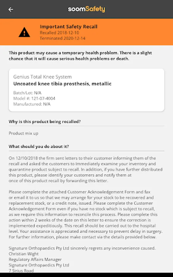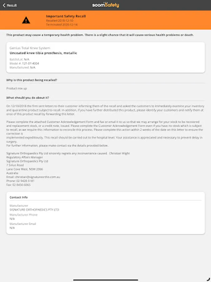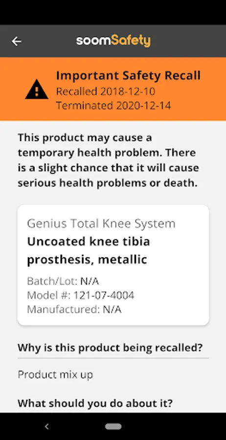SoomSafety is an essential app for patients, caregivers, and home care nurses. With SoomSafety, you can easily scan medical devices and implant cards to get instructions, safety information, and recall alerts directly from manufacturers and the U.S. FDA.