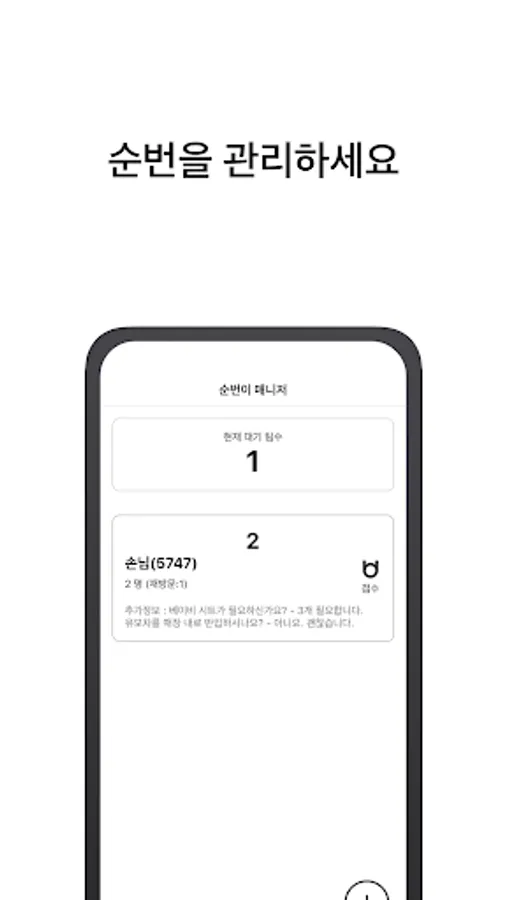 -Just enter the nickname, number of people, mobile number to receive the customer's turn.
