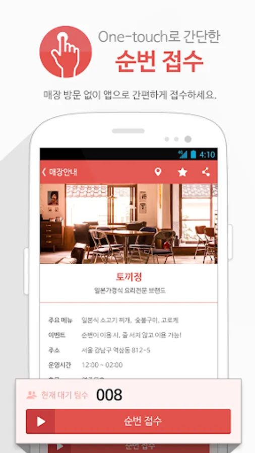 ※ Please let us know the restaurants you usually wait in line. We will solve it.