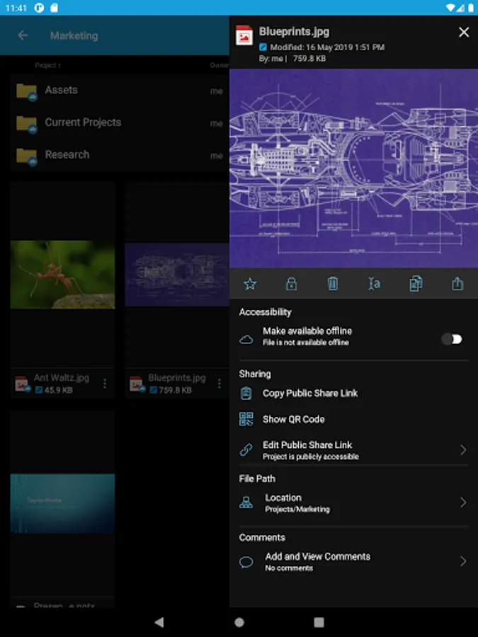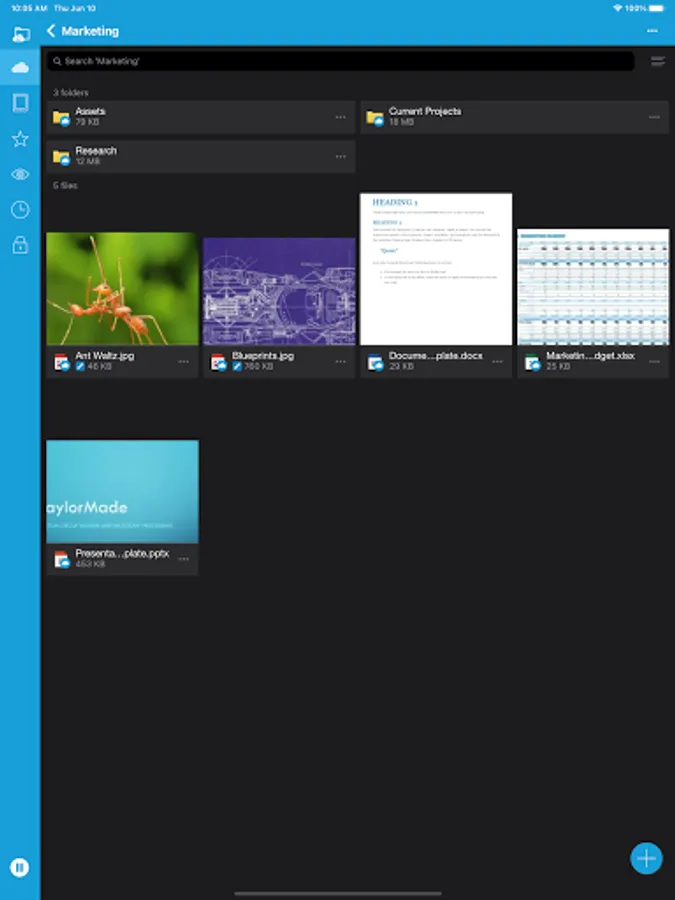 Built-in data loss prevention (DLP) including remote wipe, data copy and download prevention; file passwords and expiry; no need for a separate mobile device management solution.
