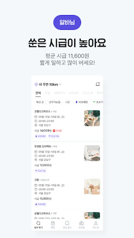 · We introduce short-term jobs with an hourly wage of 10,000 won or more.