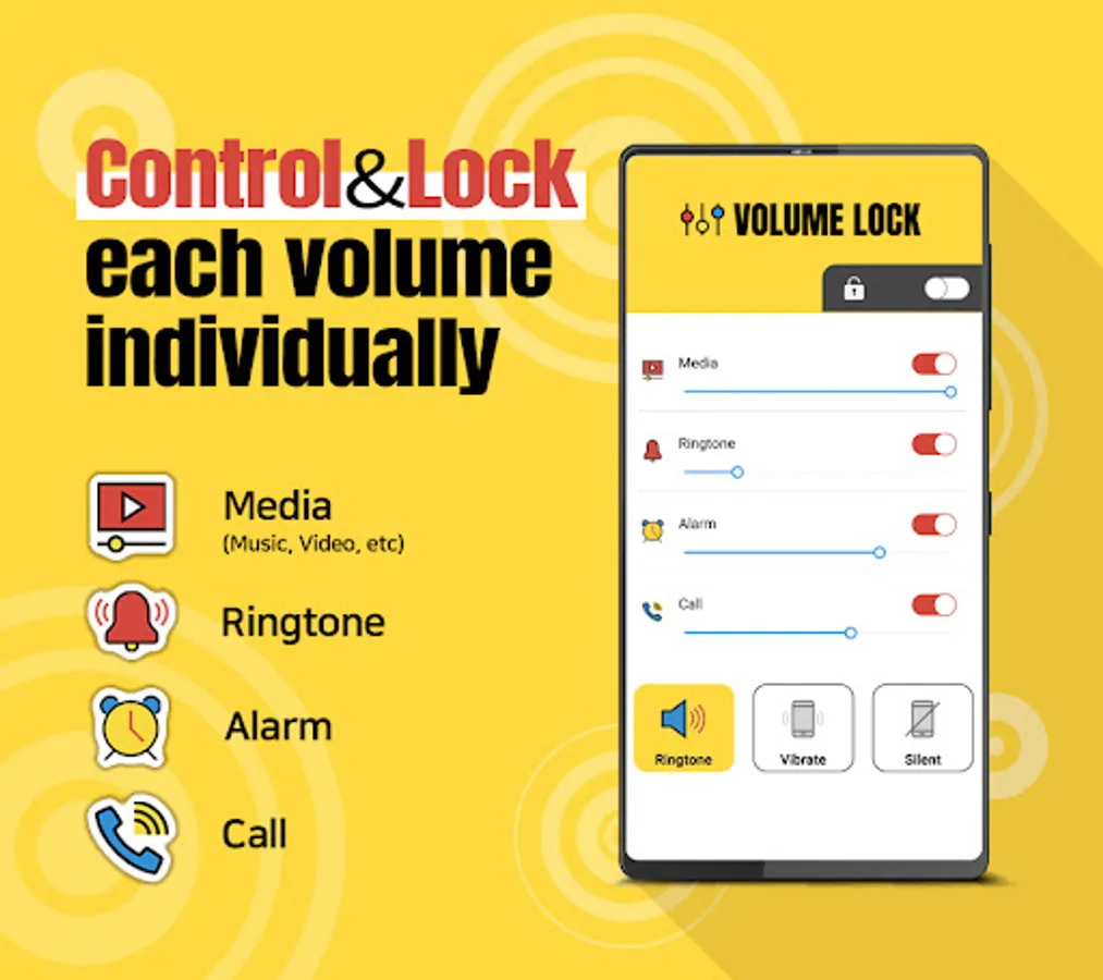 1. Custom volume settings : Ringtone, Alarm, Call, Media