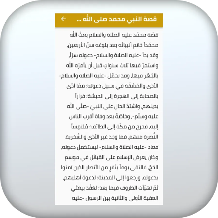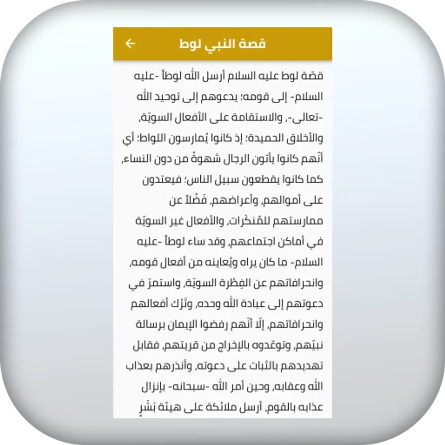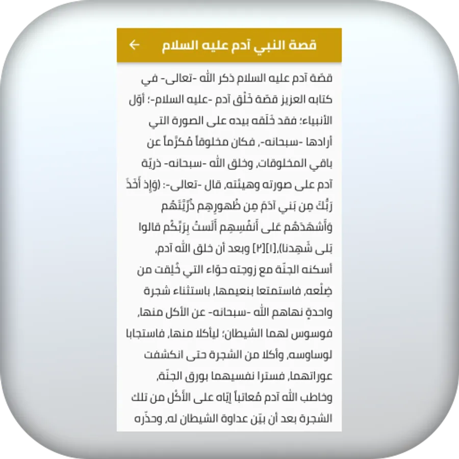The application of the stories of the prophets, where short stories about the most famous prophets with a small area and renewed content. The Prophets and Messengers Our Prophet Muhammad, may God bless him and his family and grant him peace The application of stories and prophets contains the story of the Prophet Adam, the father of mankind, the story of the Prophet Noah, the flood incident, the story of our master Ibrahim, peace be upon him, the father of the prophets, the story of his son, the Prophet Ismail, and the story of the great slaughter, as well as the application of Stories of the Prophets On the story of Prophet Musa and his stick and his journey from the cradle to prophethood and the story of our master Jesus and the story of our master and prophet, the last of the prophets and messengers, our honorable Prophet Muhammad, may God bless him and his family and grant them peace