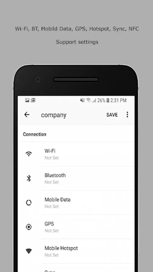 This is the app that runs the set up or changes the phone's settings at once through connection events.