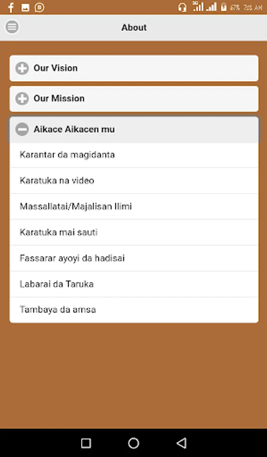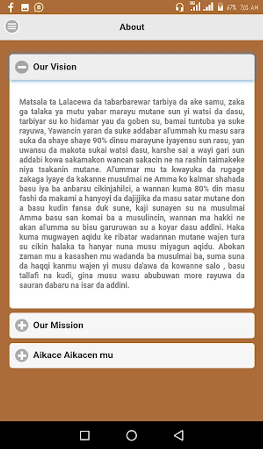 Wannan manhajar na dauke da karatun babban malamin sunna wato Shaikh Musa Yusuf Asadus-Sunnah, wanda yayi suna wajen yada addini a nan Najeriya da ma wajen kasar, da kuma sauran malaman sunnah. Wannan manhajar kuma tana dauke da online radio station< na Assahabatulkiram Foundation wanda zaya bada damar sauraren karatuttukan Malam a lokacin da yake gabatar da karatun. Hakazalika wannan manhajar ta Assahabatulkiram tana dauke da karatuttuka na video da kuma litaffan musulunci a pdf