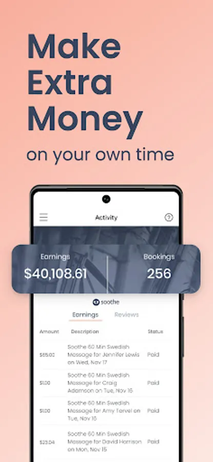 Freedom to work when and how often you want. The Soothe platform helps maximize your revenue by using your location and availability to connect you to a steady stream of clients to grow your business.