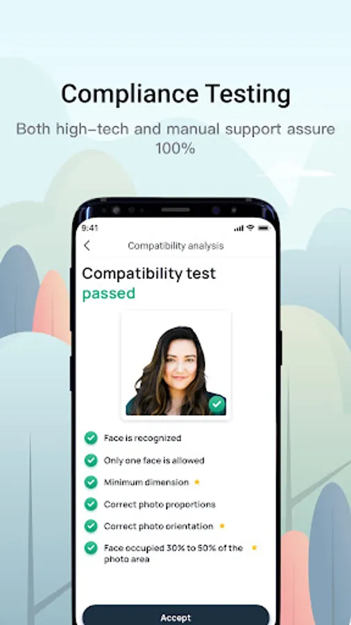 ● 100% guarantee of approval. AI technology and extra checks by our experts will ensure that your passport photos can be approved by the authority. You will not be charged until your photos are perfect.