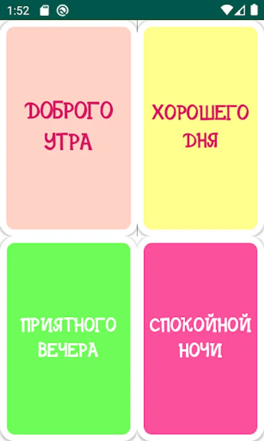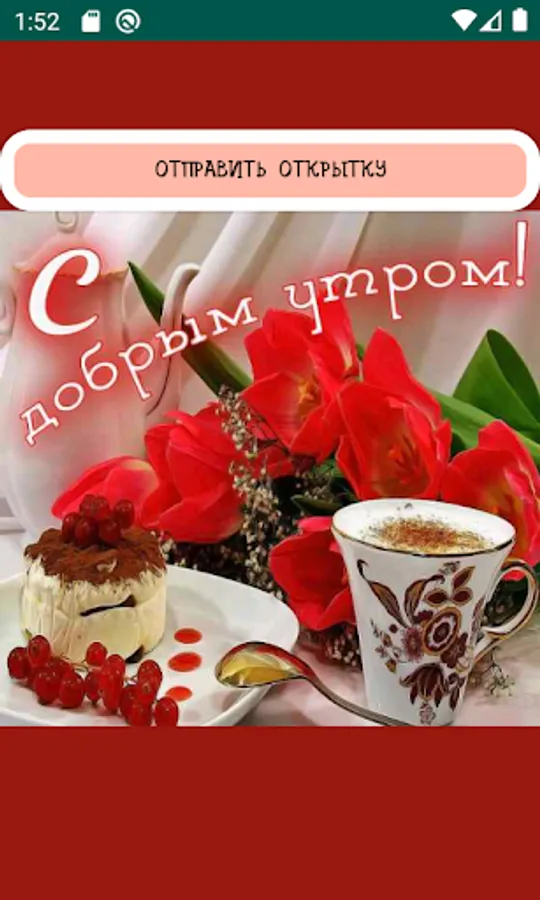 Wish good night, good morning, good evening and good day has now become much easier. In the application cards with good morning, good night, collected more than 800 colorful cards for every taste. Wish good morning, good night, good day and evening to your friends, loved ones and relatives, simply by choosing your favorite postcard and sending it through almost anything. Postcards are absolutely free and do not take up much space.