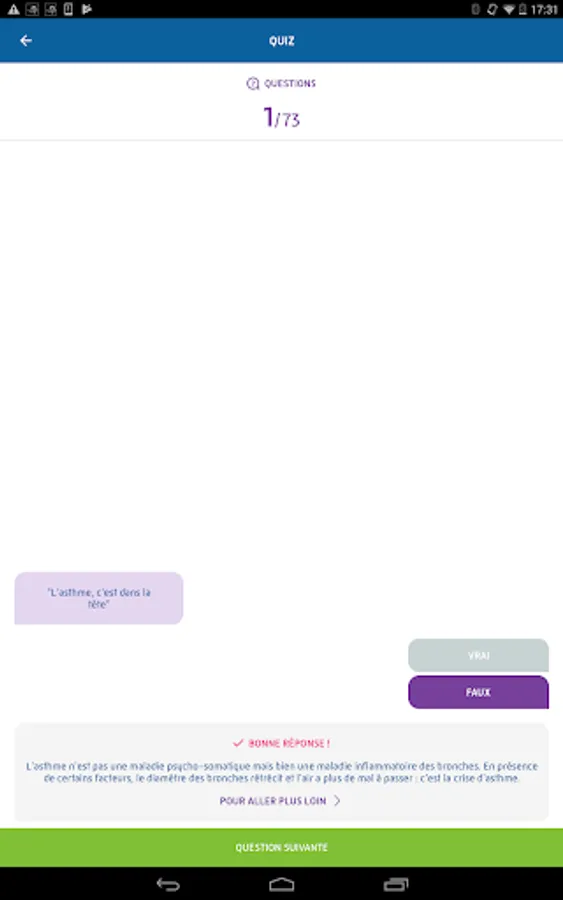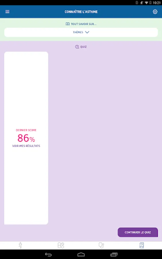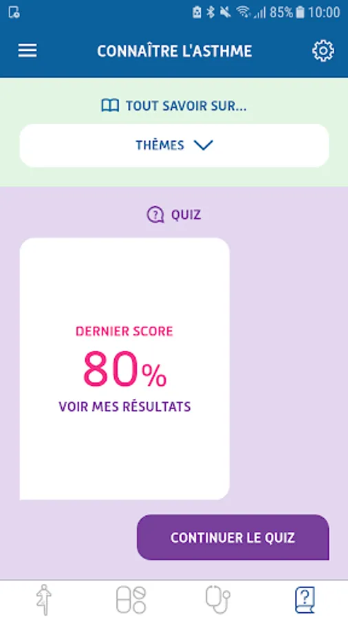 A glossary lists useful terms to better understand asthma and its treatments. In addition, a quiz gives you concrete information on asthma, and allows you to learn more about the topics that interest you.