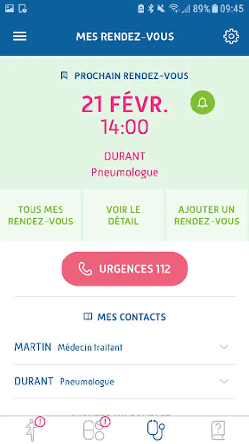 Depending on the treatments you fill in the application, it reminds you to take your medication, gives you information on their role, gives you advice on how to use the inhalers, etc.