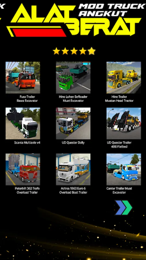 In the bussid truck mod with heavy equipment this time, we present the 2023 heavy equipment truck mod including: