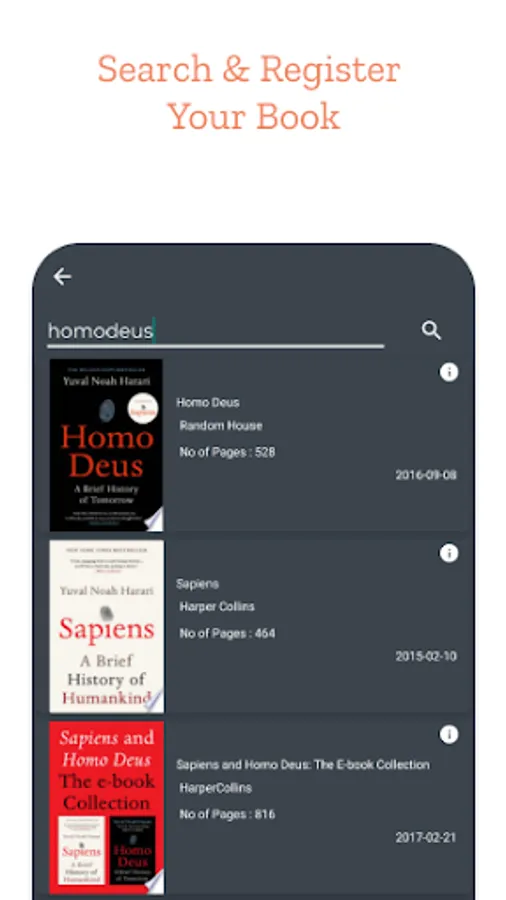 3.Search & Register Your Book by Scan , Search and Manual key-in.