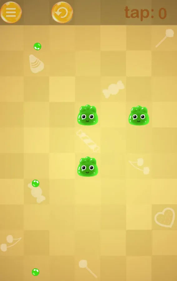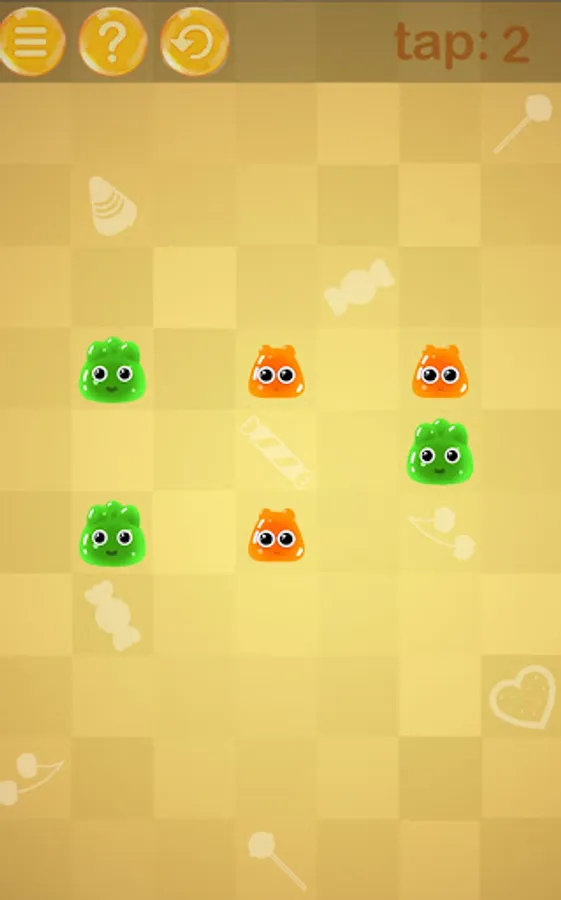 In Sweet Pop there are 4 different sweets, when they touch or hit each other they grow and burst.