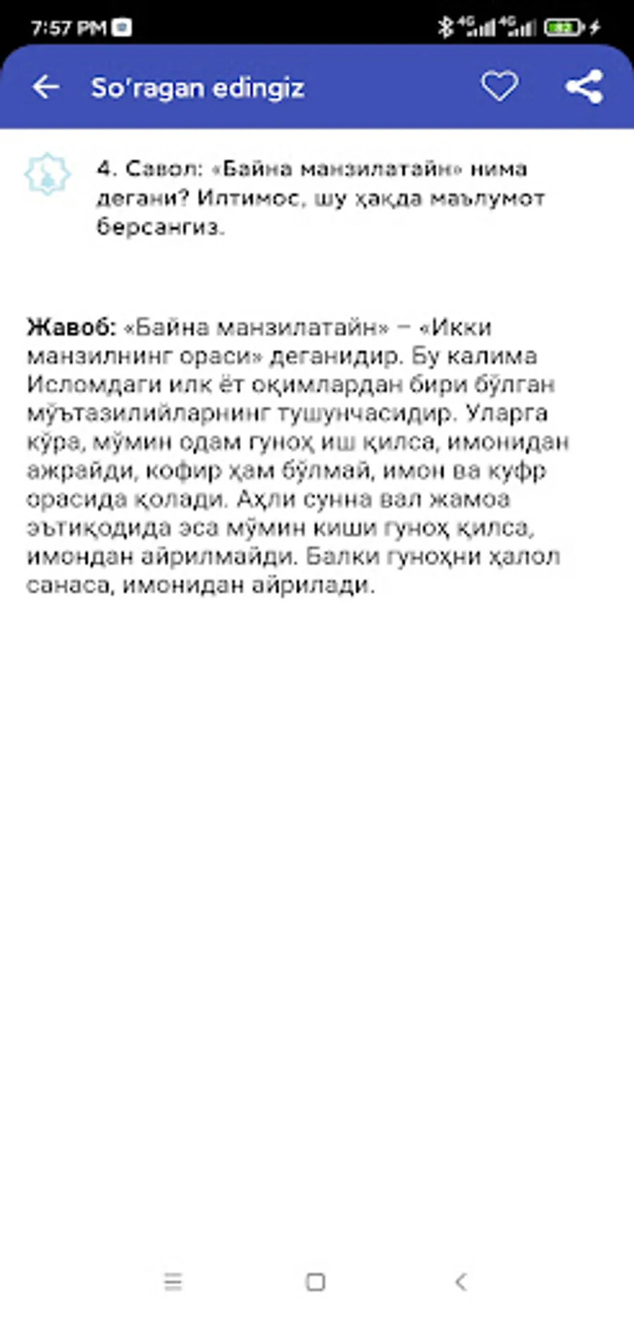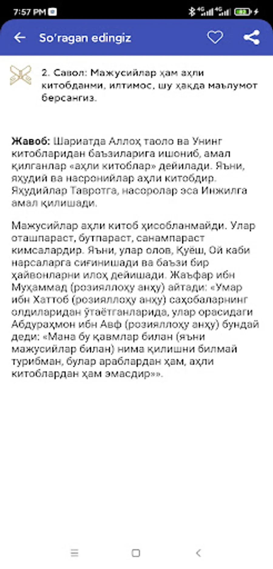 Ushbu kitobda aqida, tahorat, g‘usl, namoz va boshqa ibodatlarga doir masalalar yuzasidan muhim savollarga Imomi A’zam (rahimahulloh) asos solgan hanafiy mazhabining mo‘’tabar manbalari asosida tushunarli, qisqa va aniq javoblar berilgan.