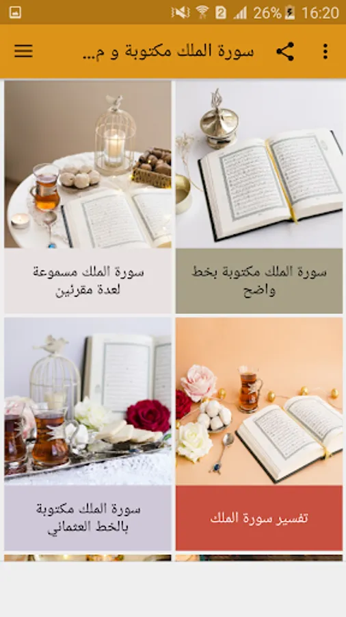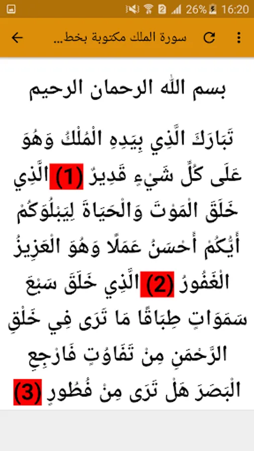 The Sura in our hands is one of the verses of the Holy Quran Makiya and the number of its verses is 30 verses. It is the first surah in the twenty-ninth part and the fifty-seventh party. It was called Surat Tabarak and was also named Surat Al-Malik