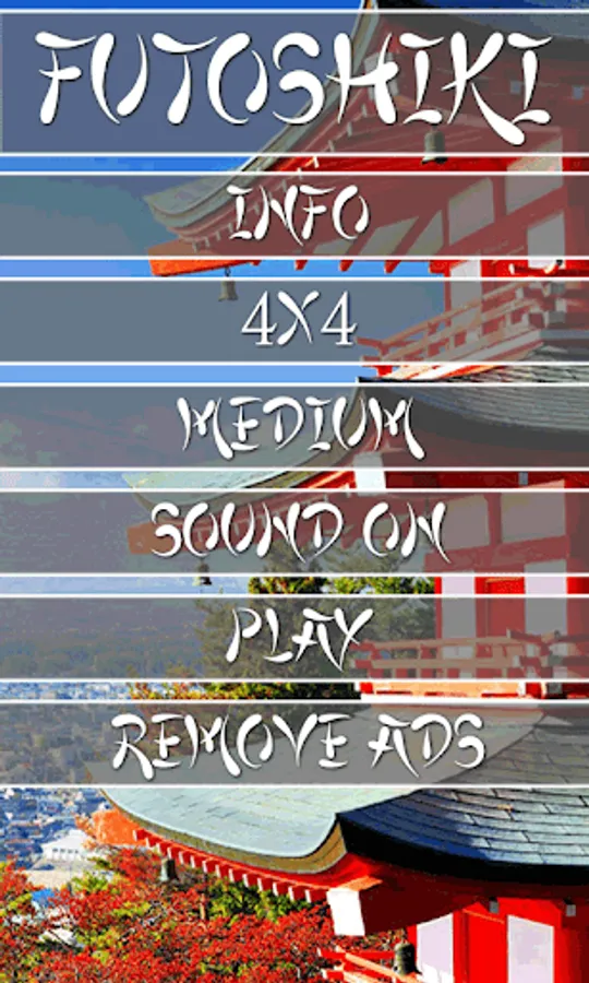 The game contains grid sizes from 4x4 up to 9x9 with 4 difficulties (24.000 puzzles)