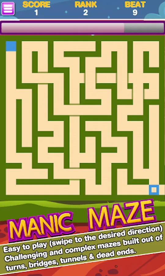 Try to escape from the complex mazes by taking the right turns, bridges and tunnels in this challenging maze escape game called Manic Maze.