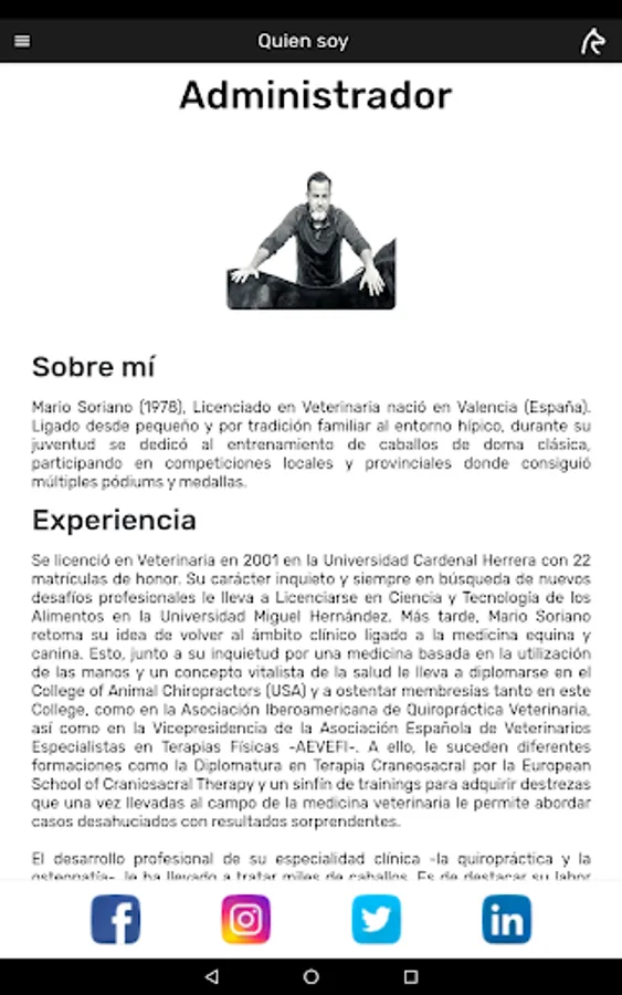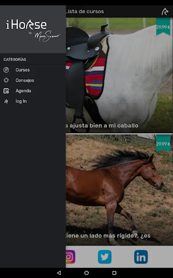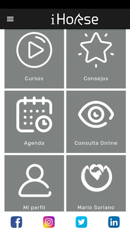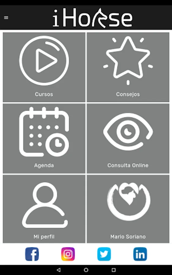 iHorse was born by Mario Soriano, veterinarian specializing in chiropractic and equine osteopathy. As a result of his years of experience, he has designed an exclusive system for assessing the physical form of the horse, on the basis of which he can recognize, on the physical level, his strengths to enhance them and also his weaknesses to improve them. Based on the assessment made, the system will propose exercises, techniques, tricks, tips and training courses with abundant material that you can apply on your horse. All with the advantage of having been designed by one of the most experienced professionals and curriculum in the equestrian sector. Accessing Mario Soriano's online consulting and designing an individualized training for your horse has never been easier. iHorse allows you to always carry on your mobile all the tips, tricks and exercises for your horse. iHorse is the technological tool you were waiting for to improve the health, well-being and sports performance of your horse.